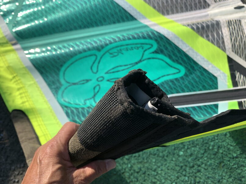 中古ウインドサーフィンセイル、GOYA GURU 4.5㎡です。 コンデションは、マストスリーブ切れ、2-3cm&~5㎝ぐらい数か所有り、ラフパネル5㎜程の切れ、バテンポケット5㎜程の穴有り、トップ、バテンエンド擦れ少、ボードのノーズでのラフパネル、メインパネル擦れ、エクボ有り、取り合えず現状で使える。