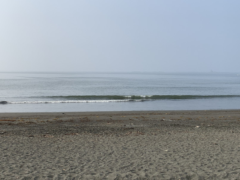 波はたまにヒザ近く、岸よりのタラタラかワイドなショアブレイク気味、ロングでテイクオフ程度。