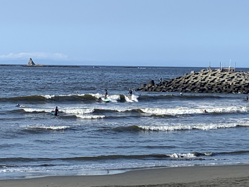 波はヒザたまにモモぐらい、ワイド気味か速めでダラダラなブレイク、テトラ横からのライトがロングベースでちょっと滑れる。