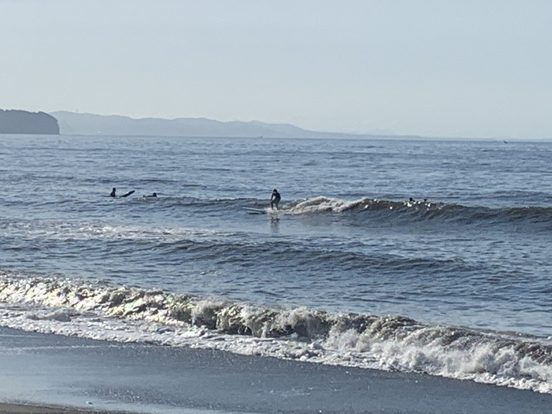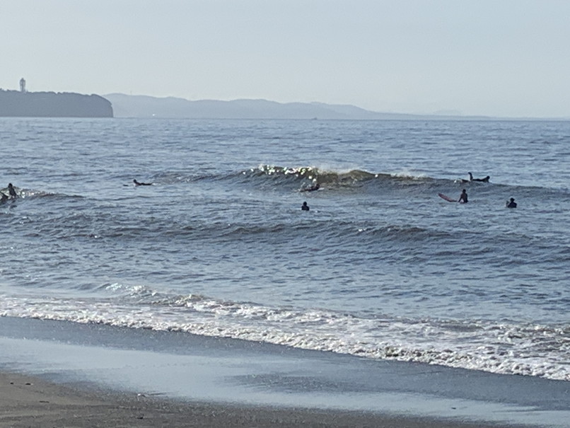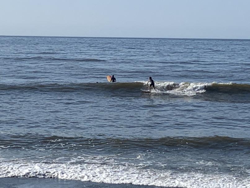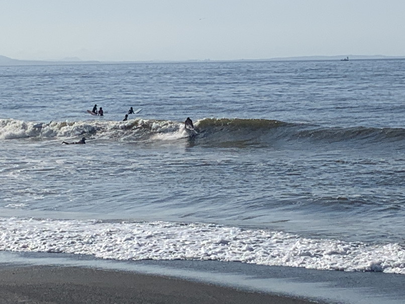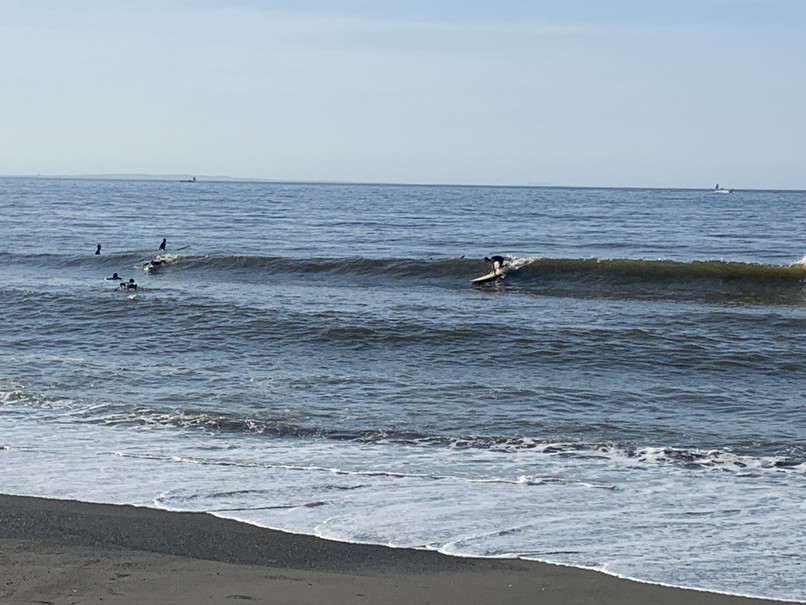 波はコシからハラぐらい、たまにムネ近くピークはワイドか若干速めなブレイク、ハジからいってロング、ショートともにちょっと滑れる。