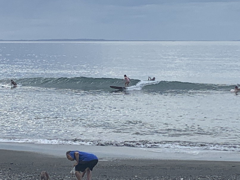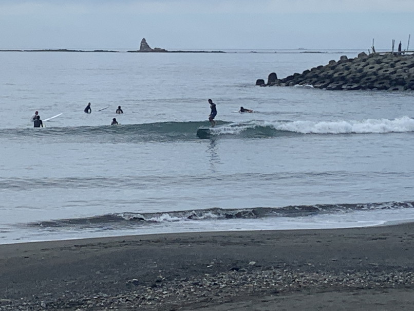 波、ヒザからたまにモモぐらいのダラダラなブレイク、ウネリからいけるロングベースでちょっと滑れる、ゆるいファンウェーブって感じ。
