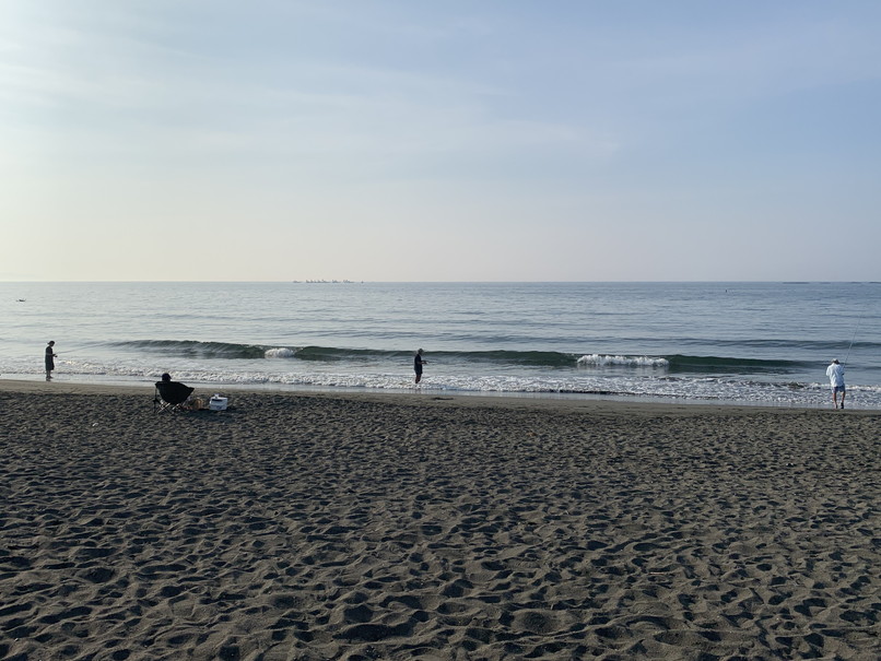 波はスネ、たまにヒザ近いウネリは入るが潮も多くほぼ割れずショアブレイクになるのみ、たまのデカいのでウネリからいけるロングでテイクオフぐらいって感じ、引いてくれば多少割れやすくなりそう。 今日は釣り人がビッチリ、被らないように。