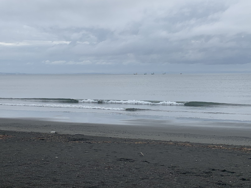 波は、スネ前後、岸近くのワイドかほぼショアブレイク気味なブレイク、ロングベースでちょっとって感じ、チーパー方面は若干滑れてるかも?