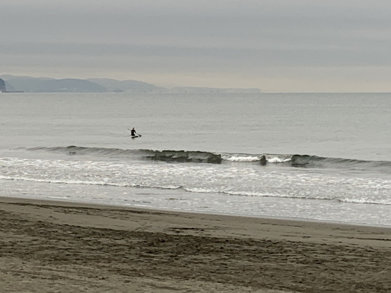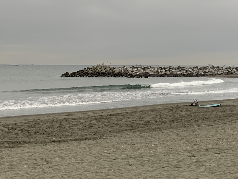 波はヒザ前後、岸寄りの速めや繋がり気味なブレイク、ウネリから行けるボードでちょっと行けるかって感じ。