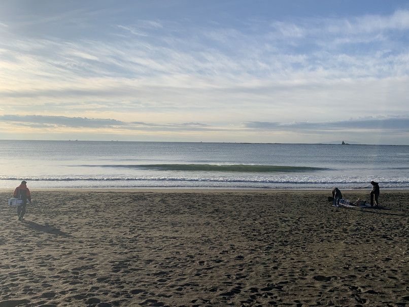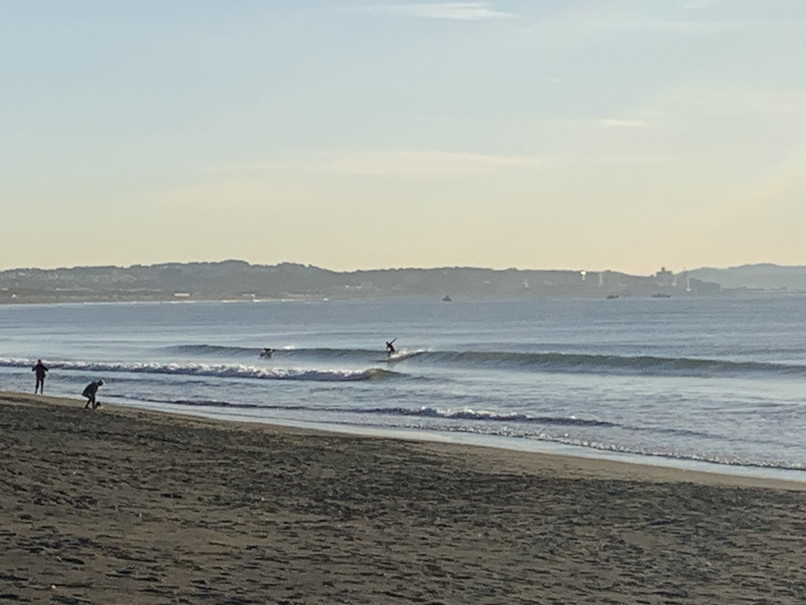 波はヒザからたまにモモぐらい、岸寄りの速めやワイドになりがちなブレイク、ピークは捕まりやすく端から行ってちょっと横にいけるぐらい。