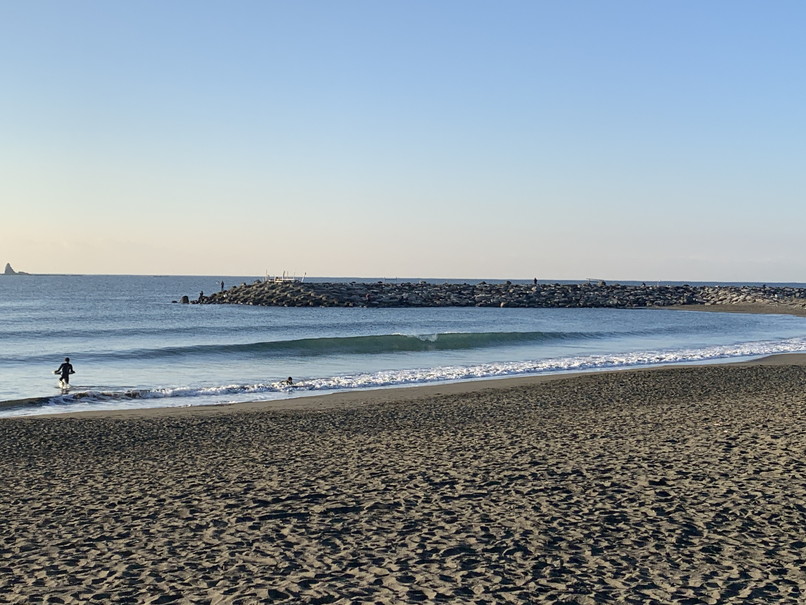 波はヒザからたまにモモ近く岸よりのワイドか繋がり気味が目立つが選んでいけばちょっと滑れる。