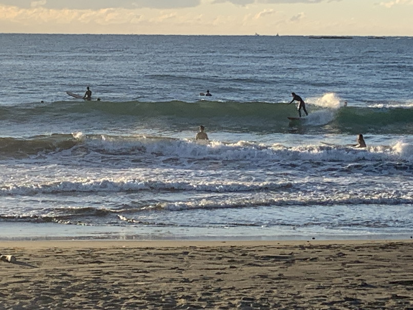 波はモモからコシぐらい、ピークは速めでショルダーの短い若干厚めなブレイク、選んでロング、ショートともにちょっと滑れる。