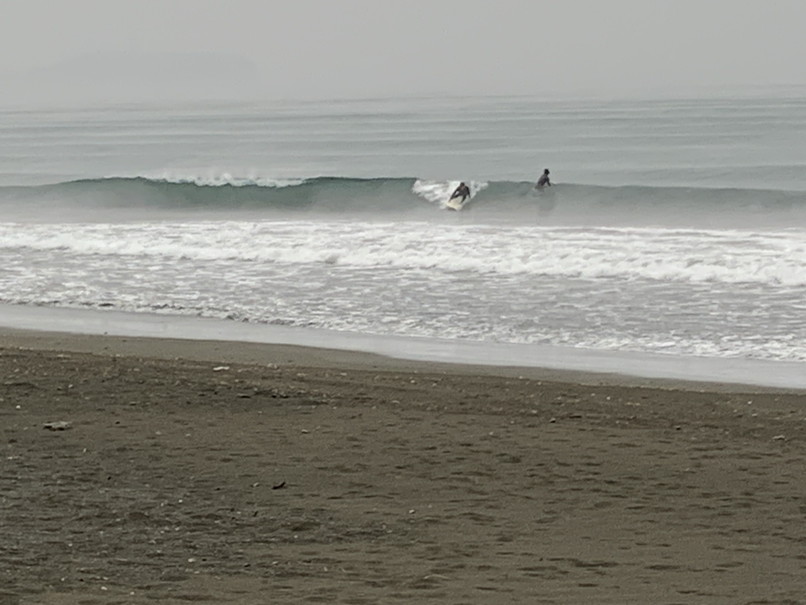 波はモモからたまにコシ、上がってきたよう、若干厚めなダラダラやサイズのあるのはピーク速めで掘れたブレイク、距離は短いがショルダーもありロング、ショートともにちょっと滑れる。