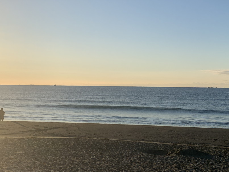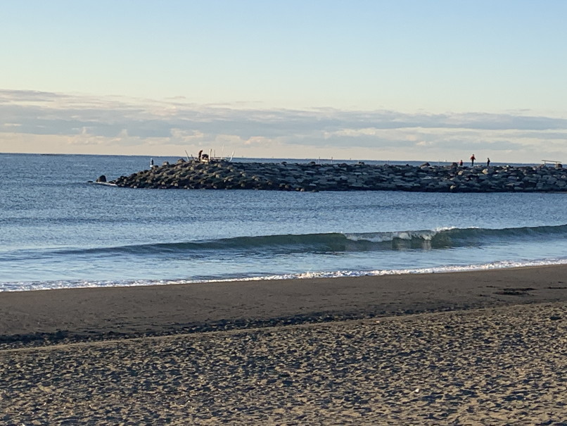 波はたまにヒザぐらいのウネリは入るが割れずほぼショアブレイク、たまに入るデカめのウネリでロングで立てるぐらい。