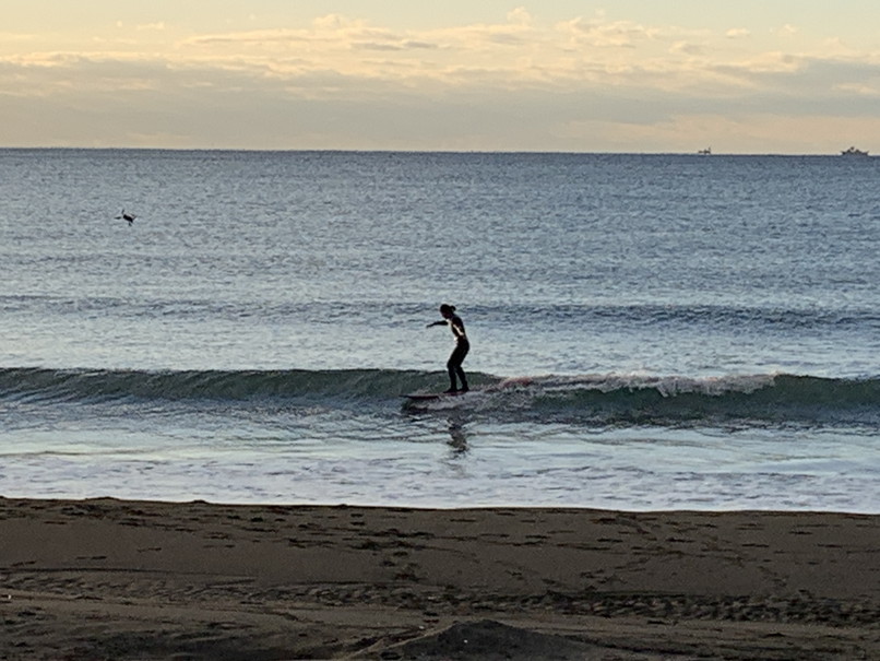 波はたまにヒザ近いウネリは入るが割れずショアブレイクになるのみでロングベースでテイクオフ程度。