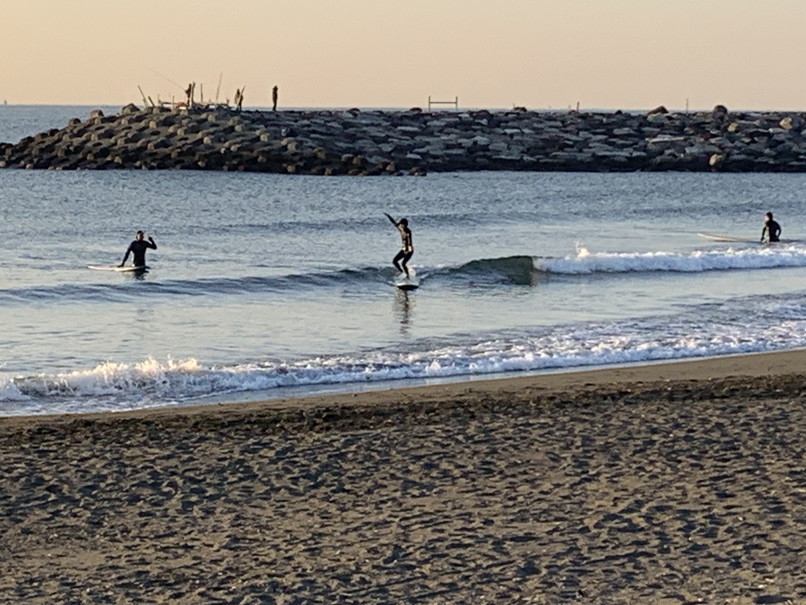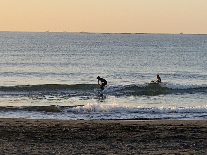 波はややバラけたたまにヒザ、力のないダラダラや岸近くのワイドなブレイク、デカ目でロングベースでなんとかって感じ。