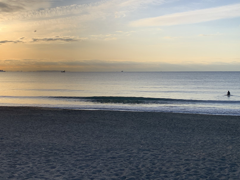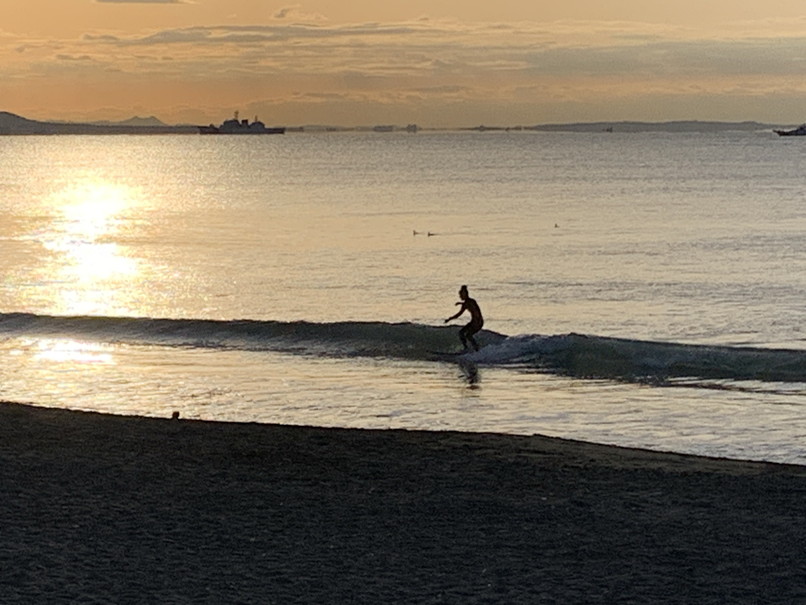 波はたまにヒザぐらいで岸近くのダラダラかワイドなブレイク、ロングやボリュームの有る板でテイクオフ程度。