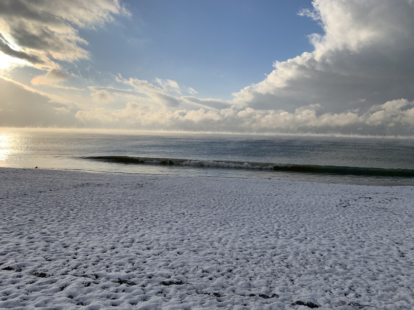 波はたまに弱いウネリが入るがほぼショアブレイクで今は厳しい。雪の後はサイズが上がると言うジンクスがある。