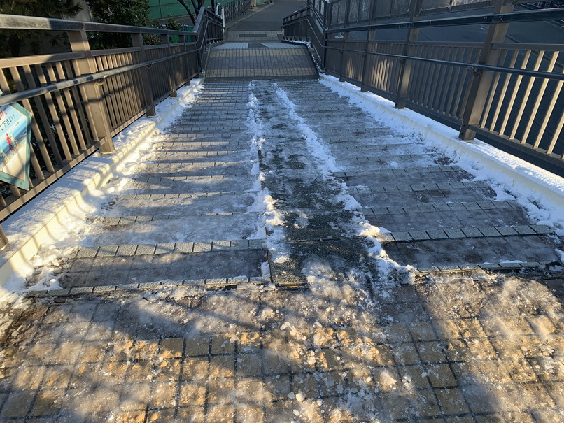歩道橋はバリバリに凍っているので注意⚠️