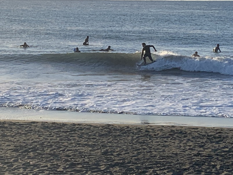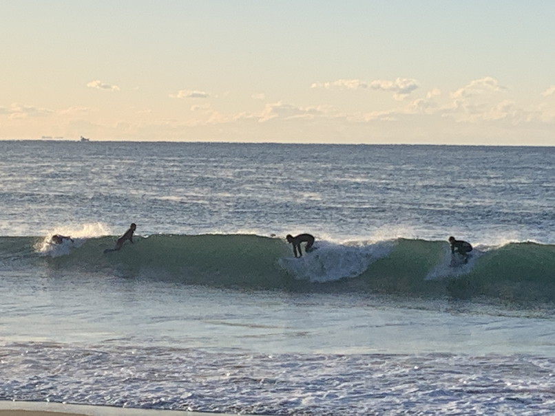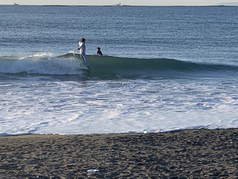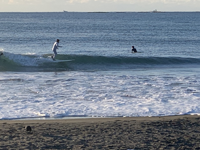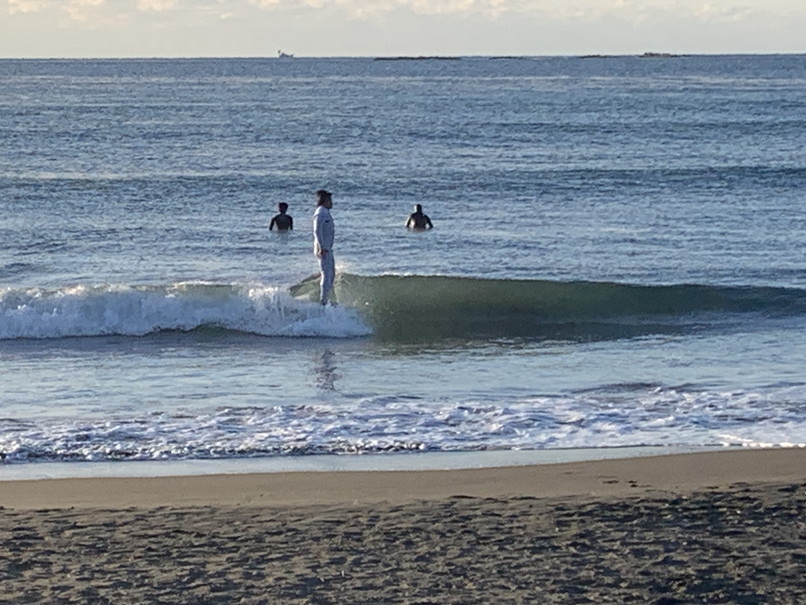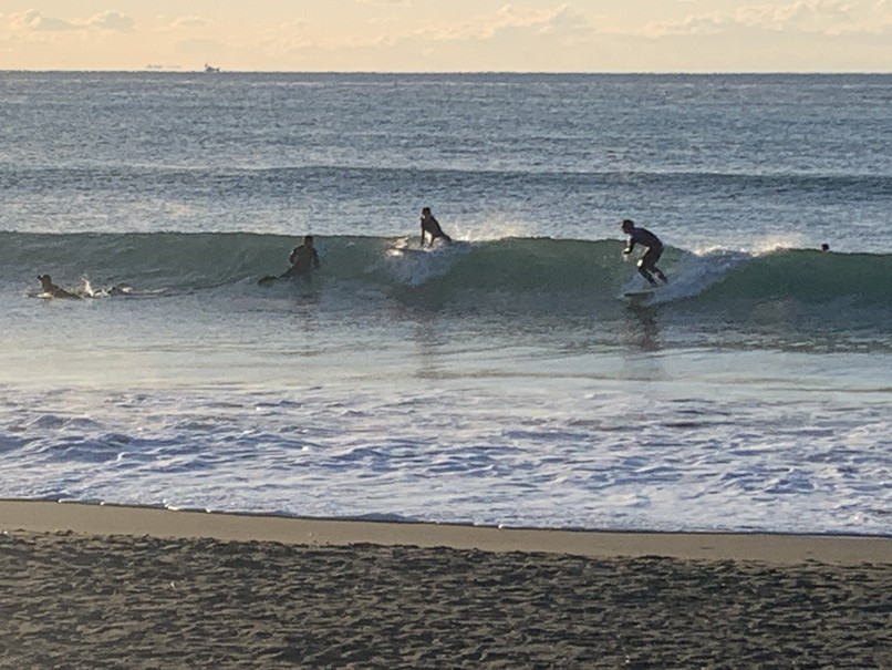 波はモモたまにコシ近く岸よりの速めか掘れたワイドなブレイク、切れ目から行ってちょっとって感じ、白樺方面も割れているが待ちが長い。