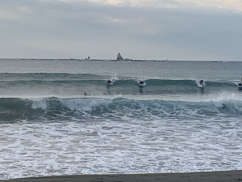波は腰前後セットたまにハラからムネ近く厚速めなブレイクが目立つが繋げる波もあり走れる、裏も割れてる。