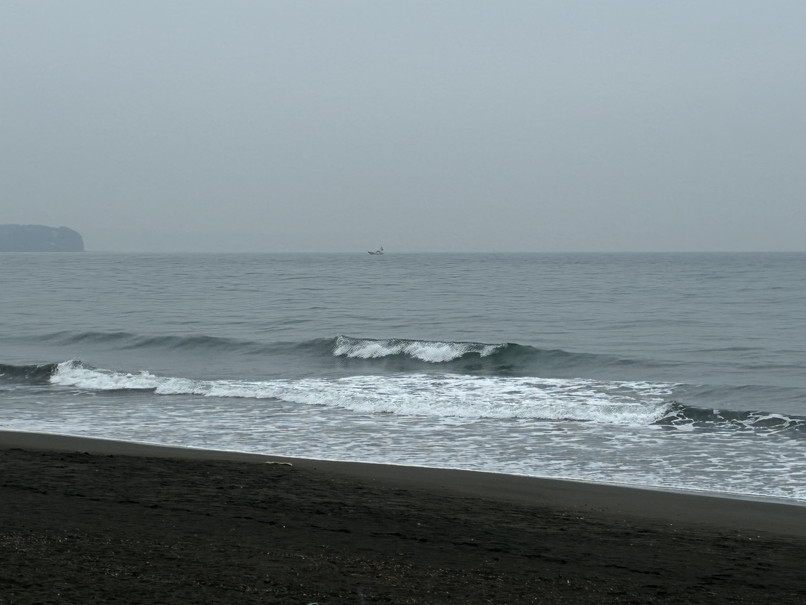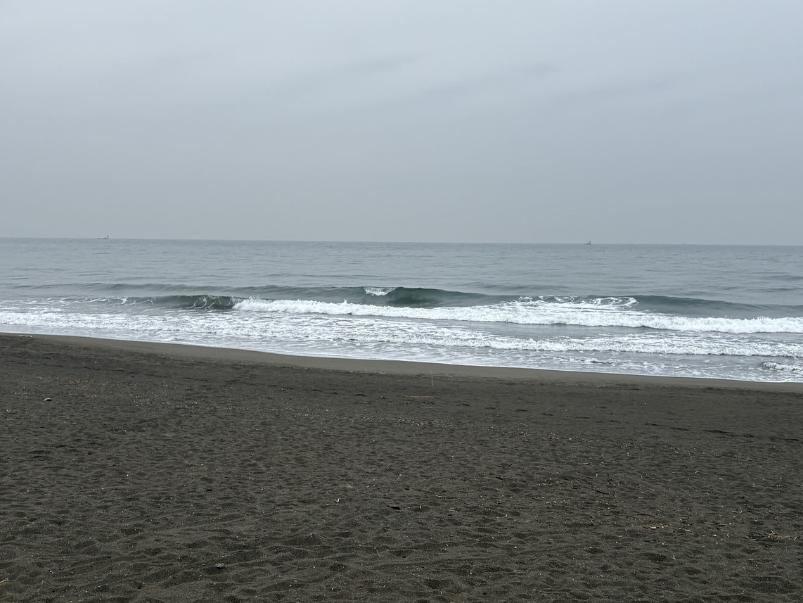 波はたまにヒザ、ややバラけた岸近くのほぼショアブレイク、ロングでなんとかって感じ。