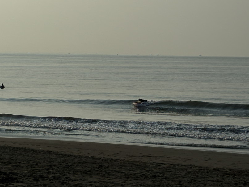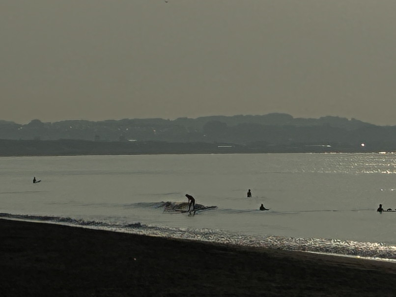 天気は晴れ、風は弱い北東って感じ、今日は北東から午後は南ベースに変わり後半軽く吹いてくるかどうかって感じ。 波はヒザ前後、たまにモモ近く岸近くの速めかショアブレイク気味たまに入るデカ目でロングベースでちょっと横にいける程度。