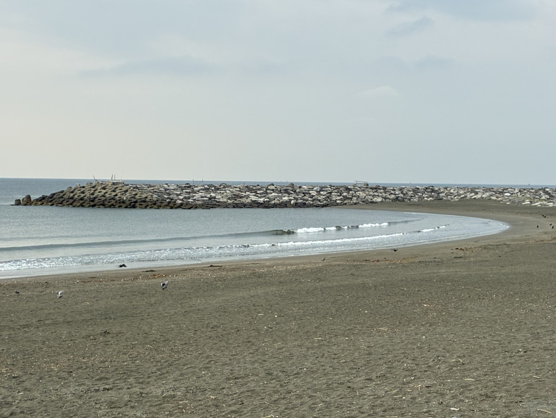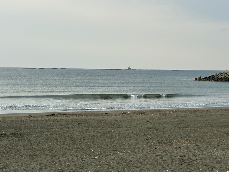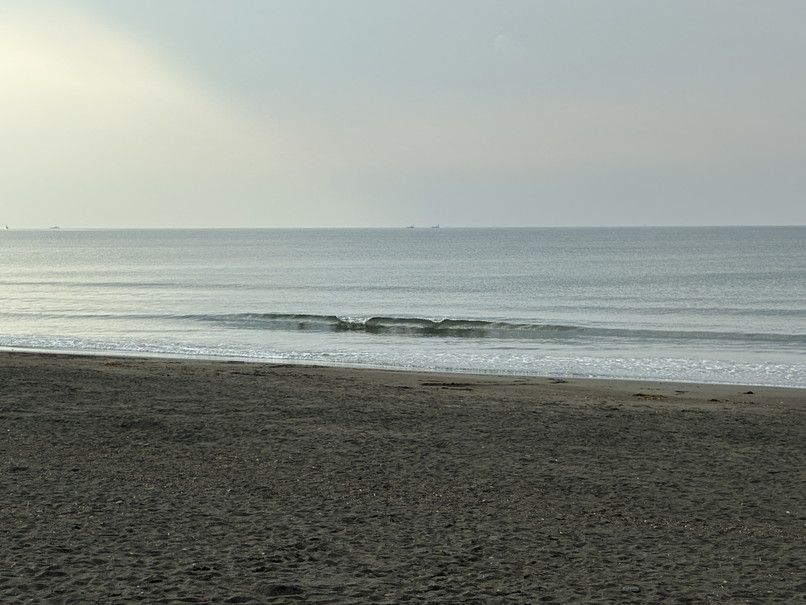 波は弱いウネリからスネ前後のほぼショアブレイク、ロングでテイクオフ程度って感じ。