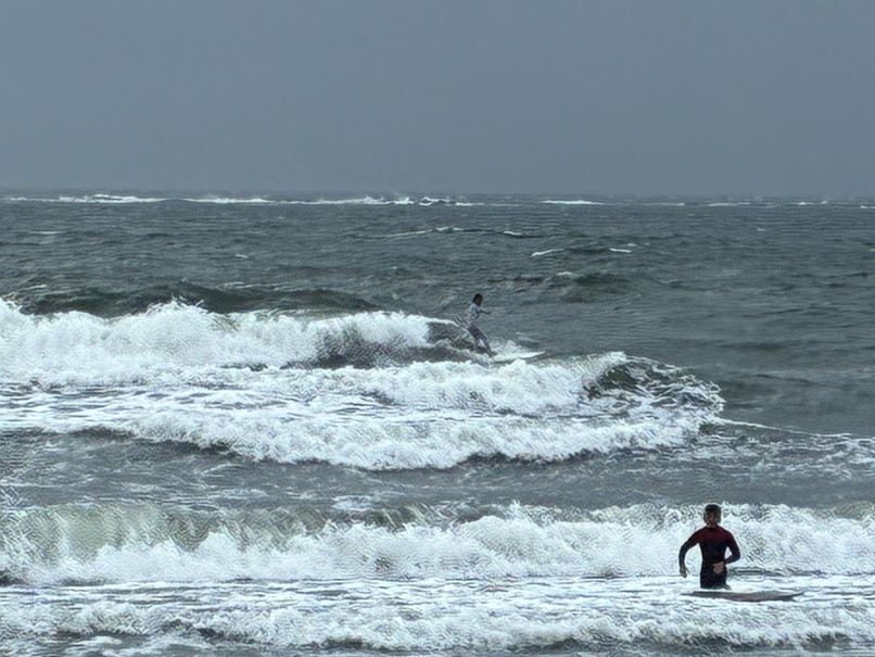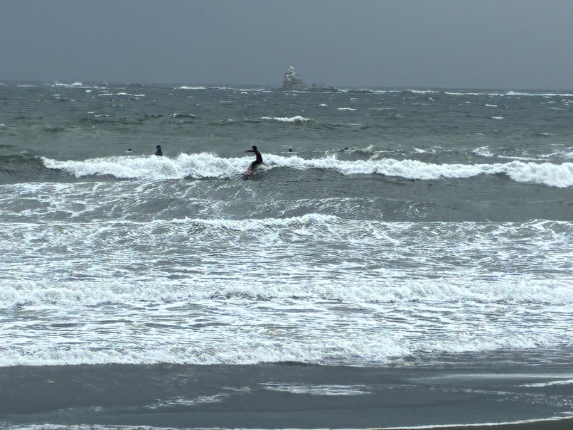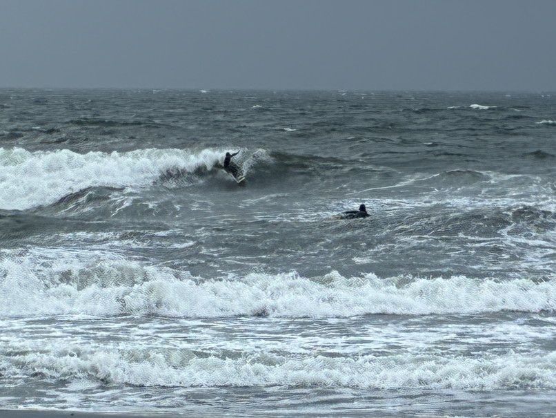 波はコシハラからムネ、まとまりのない風波の厚速いダラダラなブレイクで繋げる波は少ない。